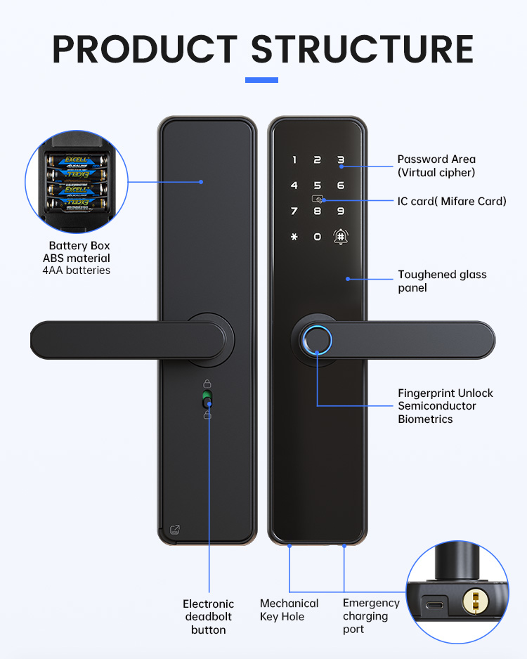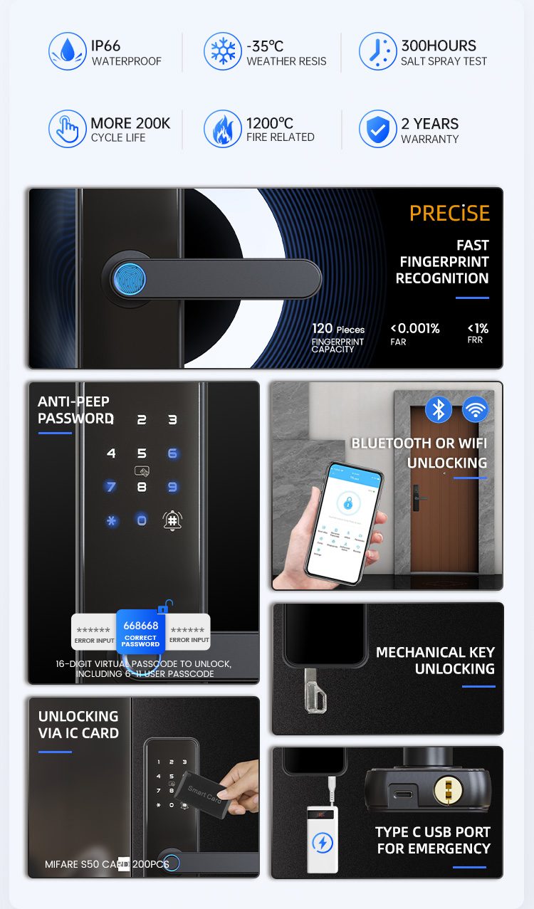 APP/ fingerprint/ password/IC card/key/BluetoothMaterial: