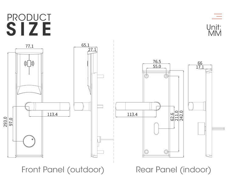 10. Front panel size:W77.1*H293*D65.1mm,back panel size:W76.5*H242*D66mm