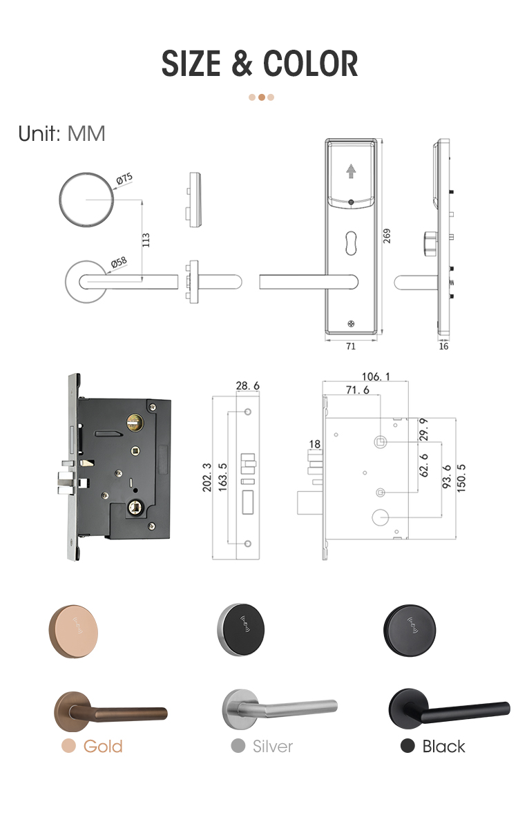 1. Unlocking by RFID card + mechanical key in emergency